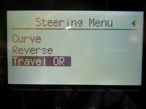 初期画面に[SOR]が出ているときにステアリングハンドルを 右に切りながらステアリングトリムを操作することで、【Travel Override】メニューの”BALANCE:R”数値が変更できます!