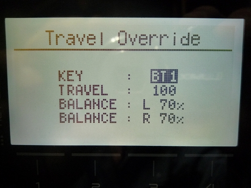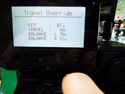 ここでは、全体の切れ角を30%減らして、オーバーライド時のTRAVELを60にしてみます。