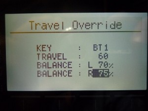 【Travel Override】>”BALANCE:R”>ENT>(JOGで数値を75へ)>ENT