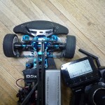 さて、動作確認です。電動カーではモーターがビューンと回ってもいいようにシャーシは台に乗せておきましょう!