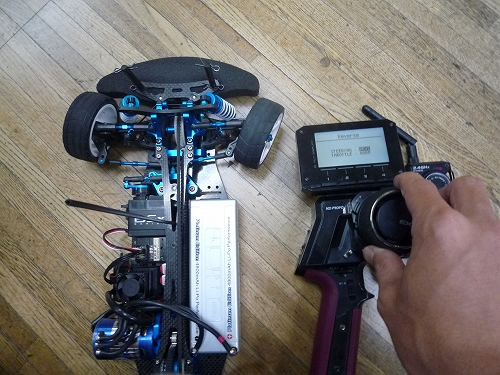最後にハンドルを左右に全部切って、サーボが唸らずに一杯まで切れることを確認します。