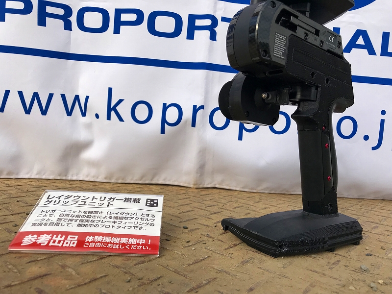 また、レースの合間には短い時間でしたが、今後発売予定の【レイダウントリガーユニット】の体験操縦会も実施しました。斬新な機構で無理のない前進、ブレーキ操作の感覚を体験していただきました。特に手の小さなお子様でも操作しやすい形状になっていますので、初めての送信機と車にも関わらず、サーキットを快走していたのが印象的でした。「発売を楽しみにしてます!」と嬉しいお言葉もたくさん頂戴しました!