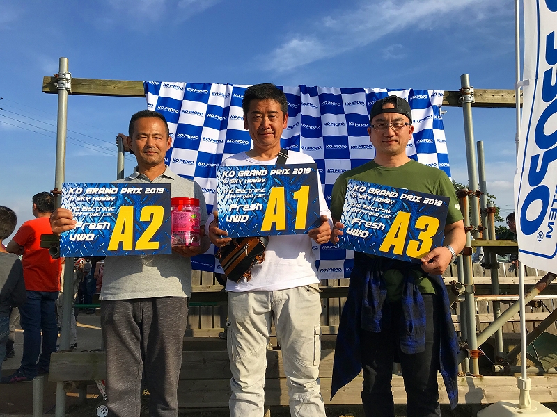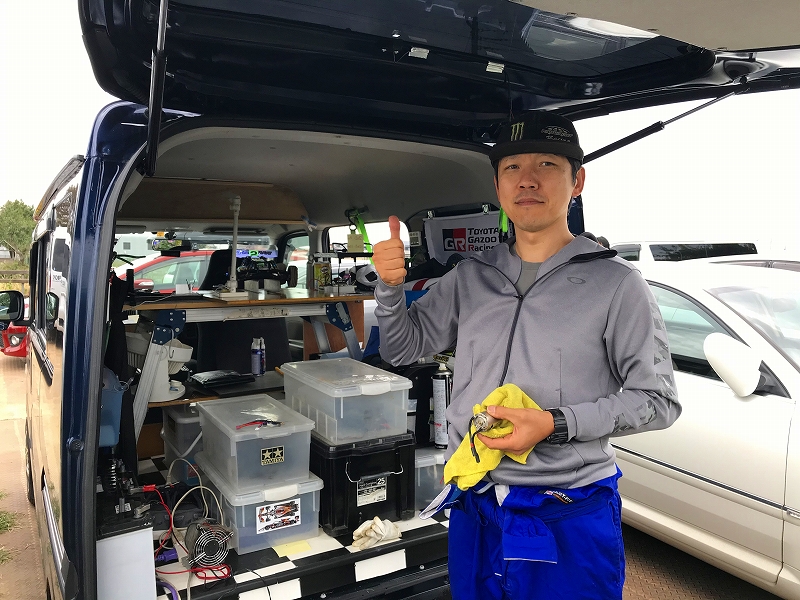 オフロードのKOグランプリはスカイホビーさんでしか行っていませんが、のびのびと走行を楽しんでいただけたようです。大空の下のピットエリアですが、参加者や見学者の皆さん、ナイスなスマイルありがとうございます!