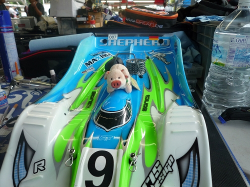 この写真のマシンはシェファードというシャーシで、ドイツのマーク・オリバー選手のマシンです。「日本のビール はいいね!」と世界戦レースを肩肘張らずにエンジョイしていた様子でしたよ!