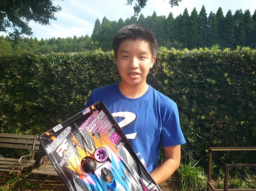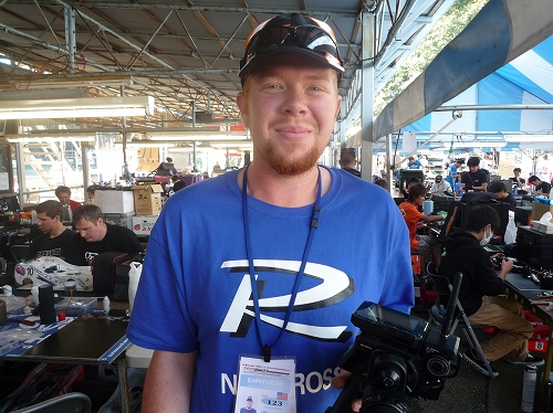 こちらはUSA代表のJJ・ワン選手。16歳の若さあふれるアグレッシブなドライバーです。EX-1KIYプロポ、ステアリングにRSxレスポンス、スロットルにはRSxパワーと新製品のKR-413FHを使用していました。