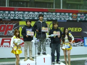 塩原選手はJMRCAのレースでも活躍のヤングドライバーです。レースではぶっちぎりの速さを披露してくれました。サポートドライバーのように表彰台にEX-1を持ってあがってくれました。ありがとうございます!