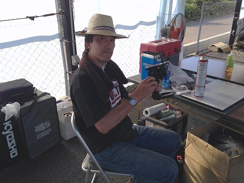 ンス・TH にパワータイプ)を使用。事前テストの結果、シャーシ側の制限で他社より容量が大きくない受信機バッテリーを使用する必要があるので、BSx2にして燃費を稼ぐ方向にしたそうです。RSx2よりトルクとスピードに若干の影響はありますが、シャーシ側のセッティングでカバーできる範囲のため、この仕様でレースに挑みました。