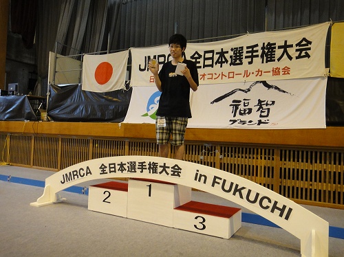 参加人数は選手権クラスとストッククラス合わせて述べ112人。JMRCA1/12レーシング全日本選手権クラスにおいて、KOPROPOサポートドライバーでチームCRCクレストの石岡勇人選手が堂々の優勝を遂げられました!