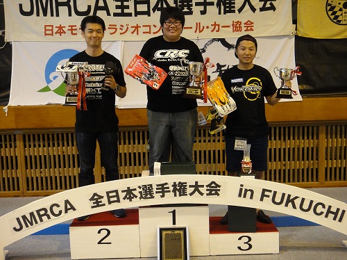 石岡選手のシャーシはCRCのXti Altered Ego、モーターはトリニティ、ESCはブラックダイヤモンドでしょうか。受信機はもちろん、抜群の応答性能を備えたKR-413FHですね。この優勝という結果と石岡選手の予選から見せていた圧倒的な速さにより、会場でのRSx12の反響はかなりのものだったそうです。