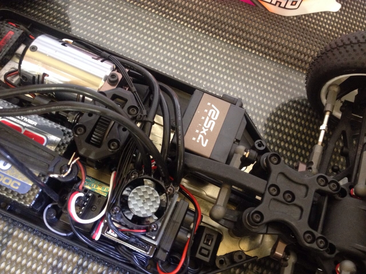 ステアリングサーボにはBSx2One10Responseを使用。大会1ヶ月ほど前に連絡を頂戴し、最強のトルクと使いやすさのサーボはどれ?とのご質問にオススメしたサーボをご使用くださりました。見事に自身最高位をゲット!うれしい限りです!