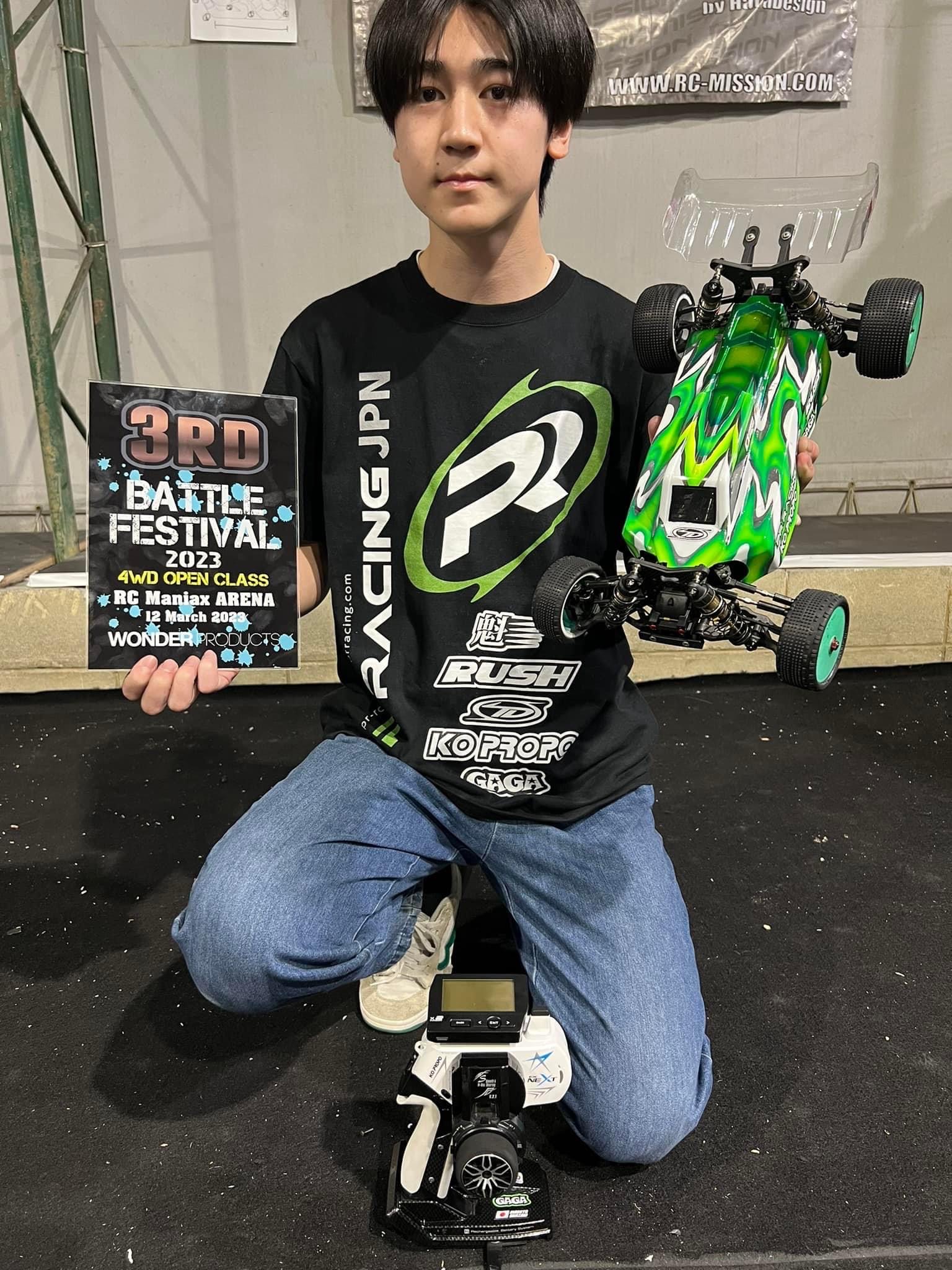 先日RCマニアックスアリーナさんで行われた4WDバトルフェスでサポートドライバーの岡崎マサヤ選手が見事3位表彰台を獲得した時のGRASPER2セットです。